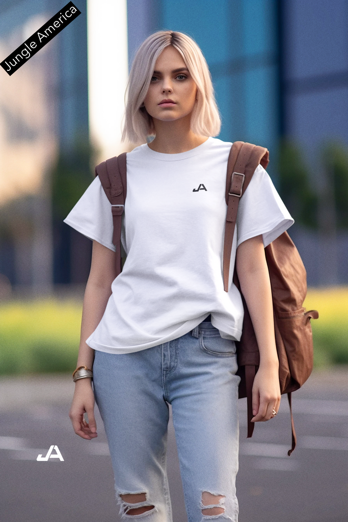 Jungle America Logo'd Tee - Wear Your Voice. Jungle America stands beside you on your journey. This shirt won't let you down, feels soft and lightweight, with the right amount of stretch. It's comfortable and flattering for all. Be Brave, Be Bold, Be You.