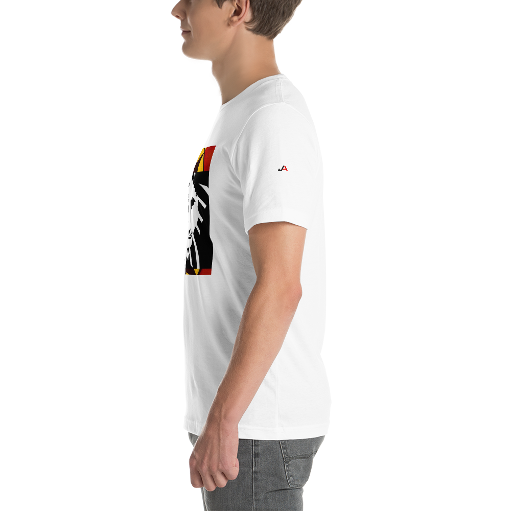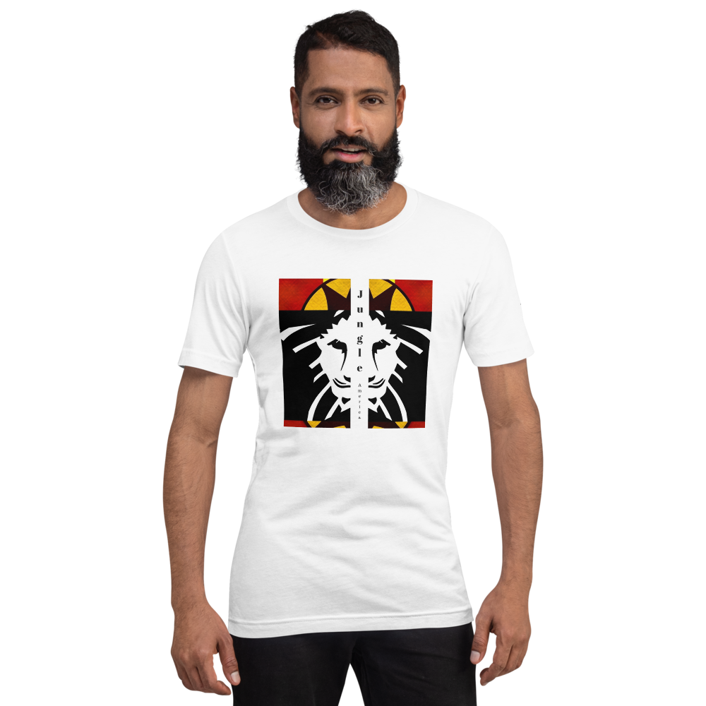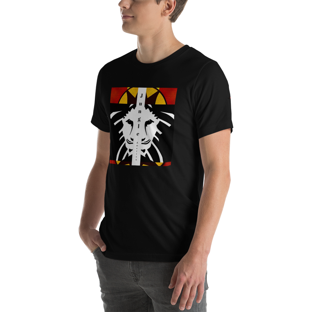 Jungle America Cali Tee - Wear Your Voice. Jungle America stands beside you on your journey. This shirt won't let you down, feels soft and lightweight, with the right amount of stretch. It's comfortable and flattering for all. JA Lion On Front, Jungle America Logo on Left Sleeve. Be Brave, Be Bold, Be You.