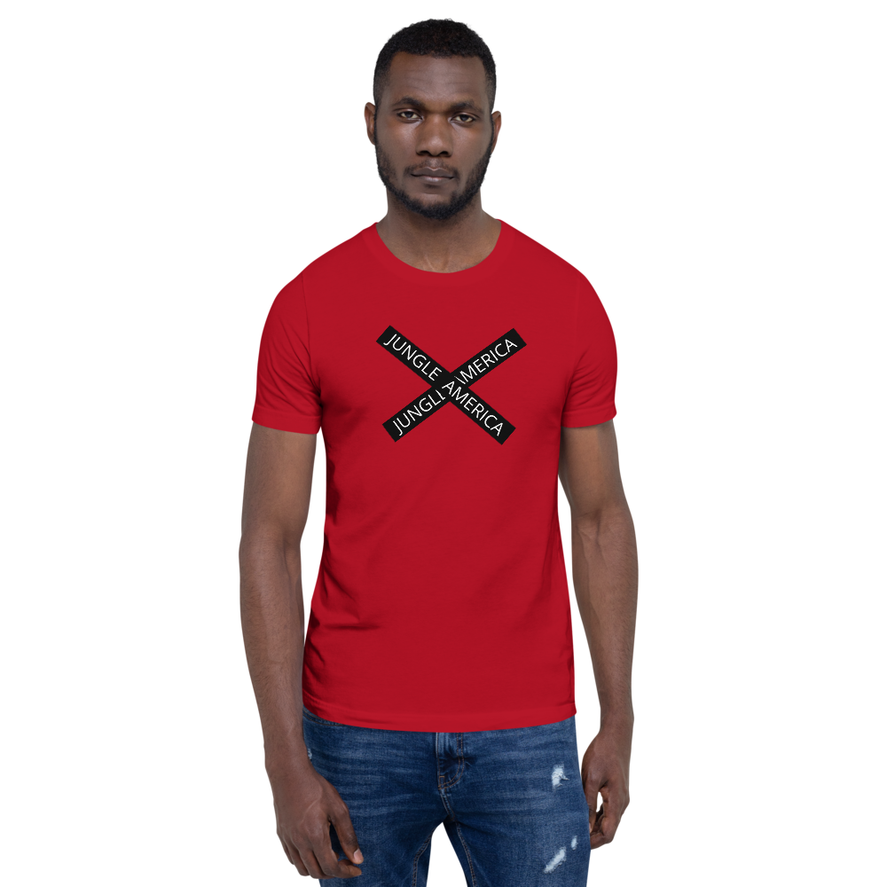 Jungle America X'd Tee - Wear Your Voice. Jungle America stands beside you on your journey. This shirt won't let you down, feels soft and lightweight, with the right amount of stretch. It's comfortable and flattering for all. Be Brave, Be Bold, Be You.